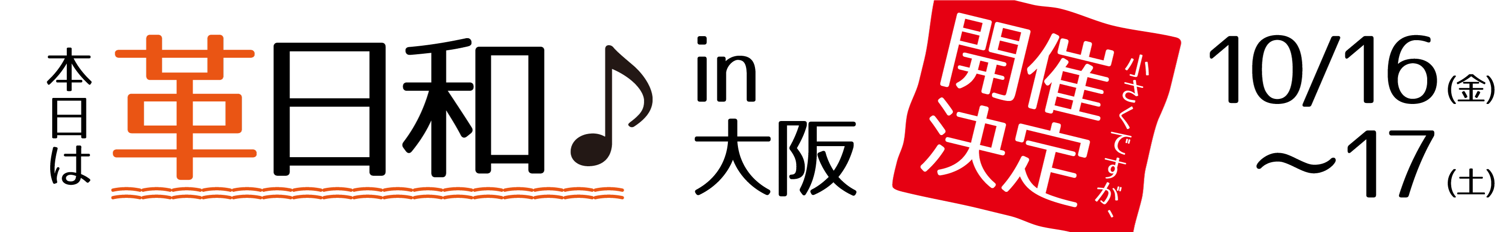10月16日(金)~17日(土)の2日間、『秋の本日は革日和♪in大阪』が開催されることとなりました!