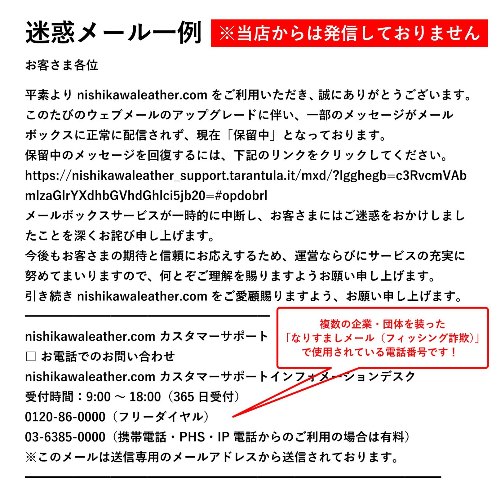 当店を装った迷惑メールにご注意ください