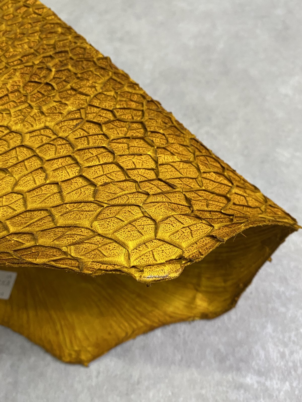 名称通りのハニカム構造になったヒダが不思議な牛の第二胃であるハチノスを加工した希少なレザーです。