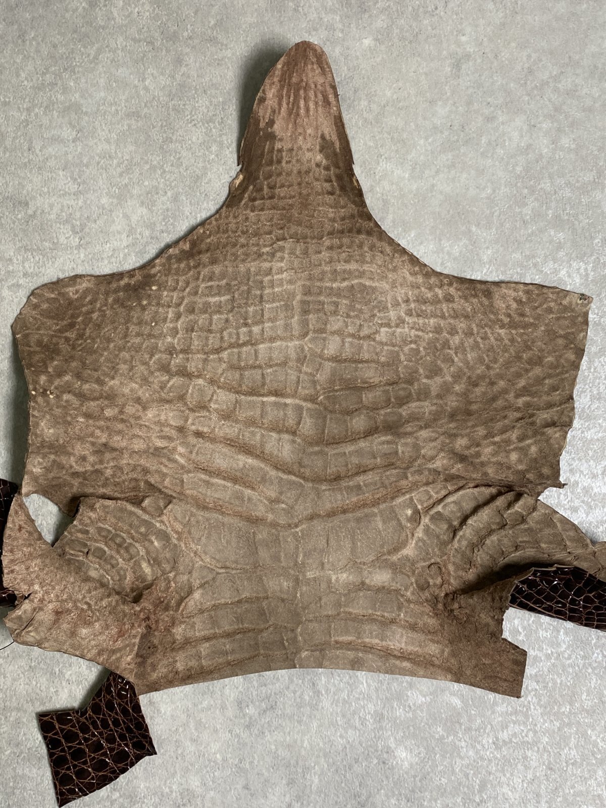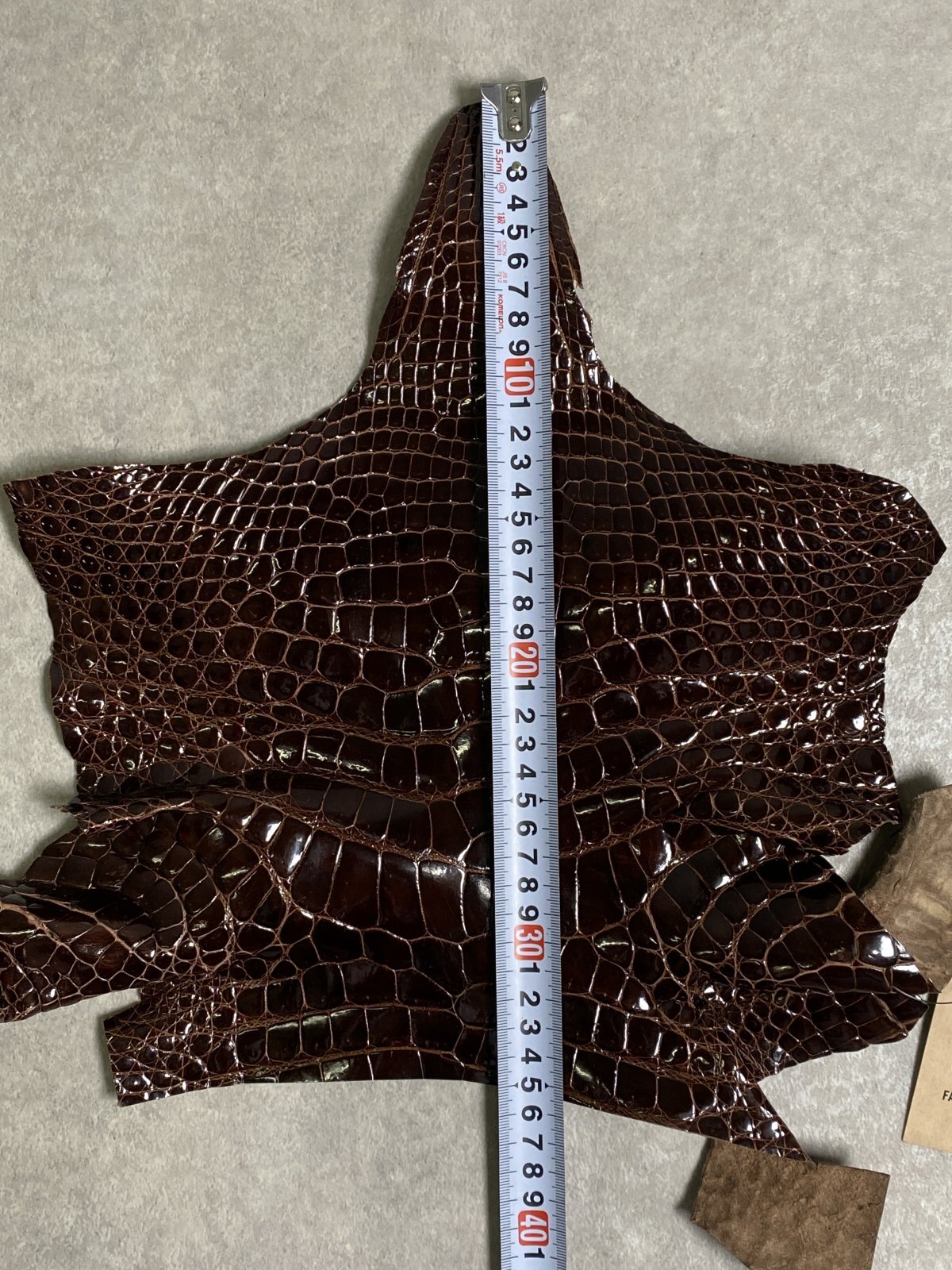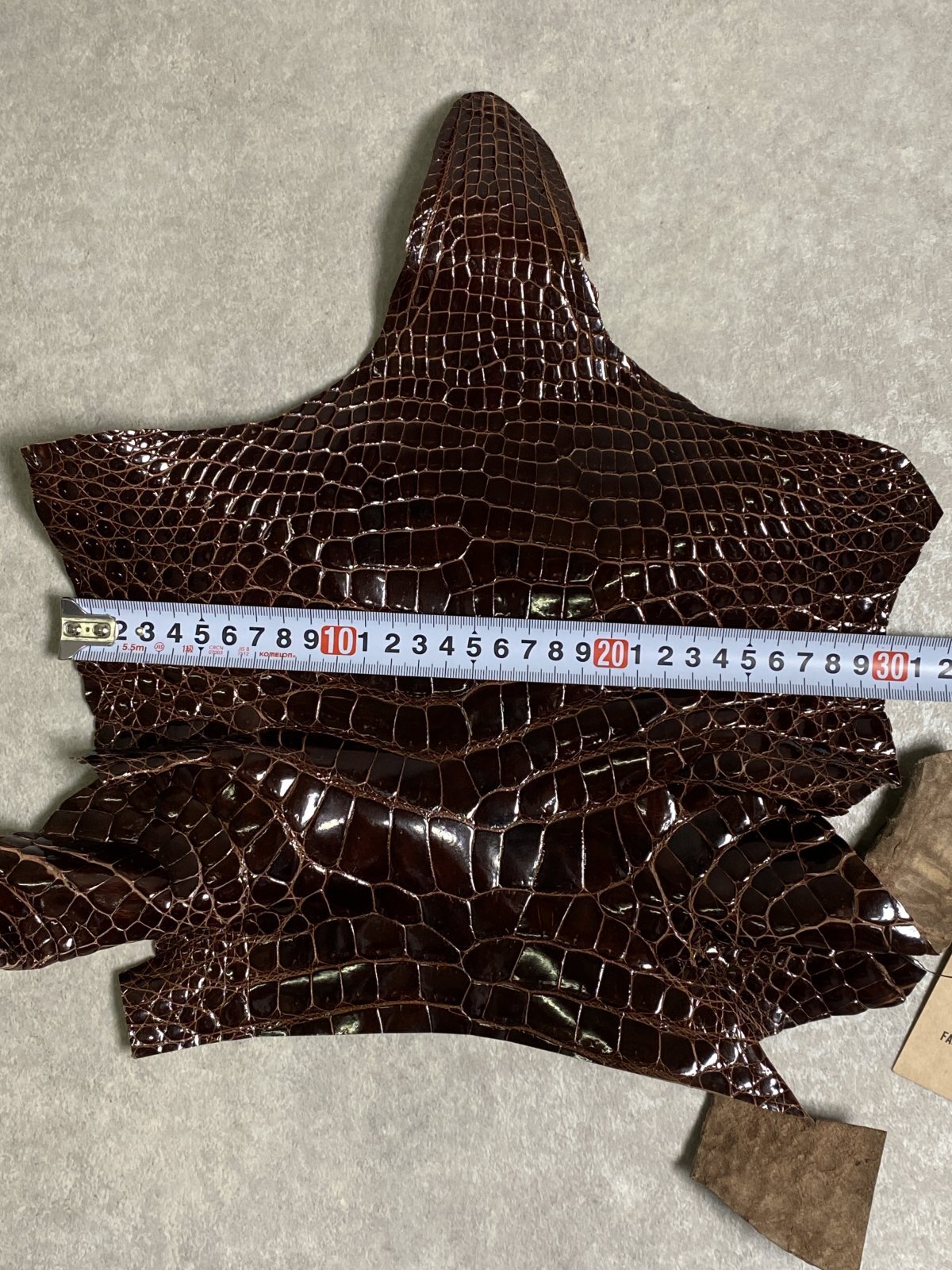特徴のある鱗(腑)の模様が細やかで美しく高級財布等に使用されています。