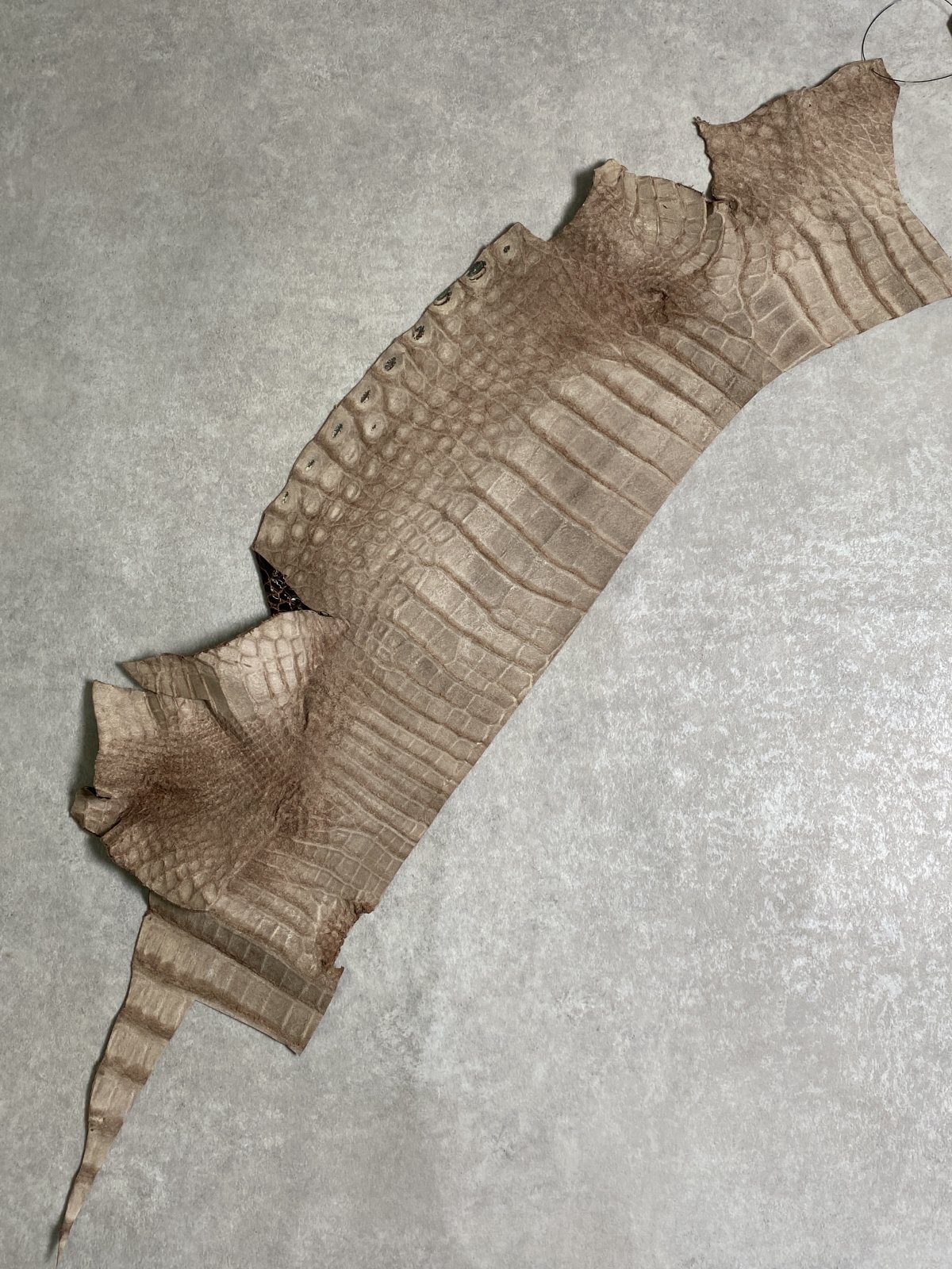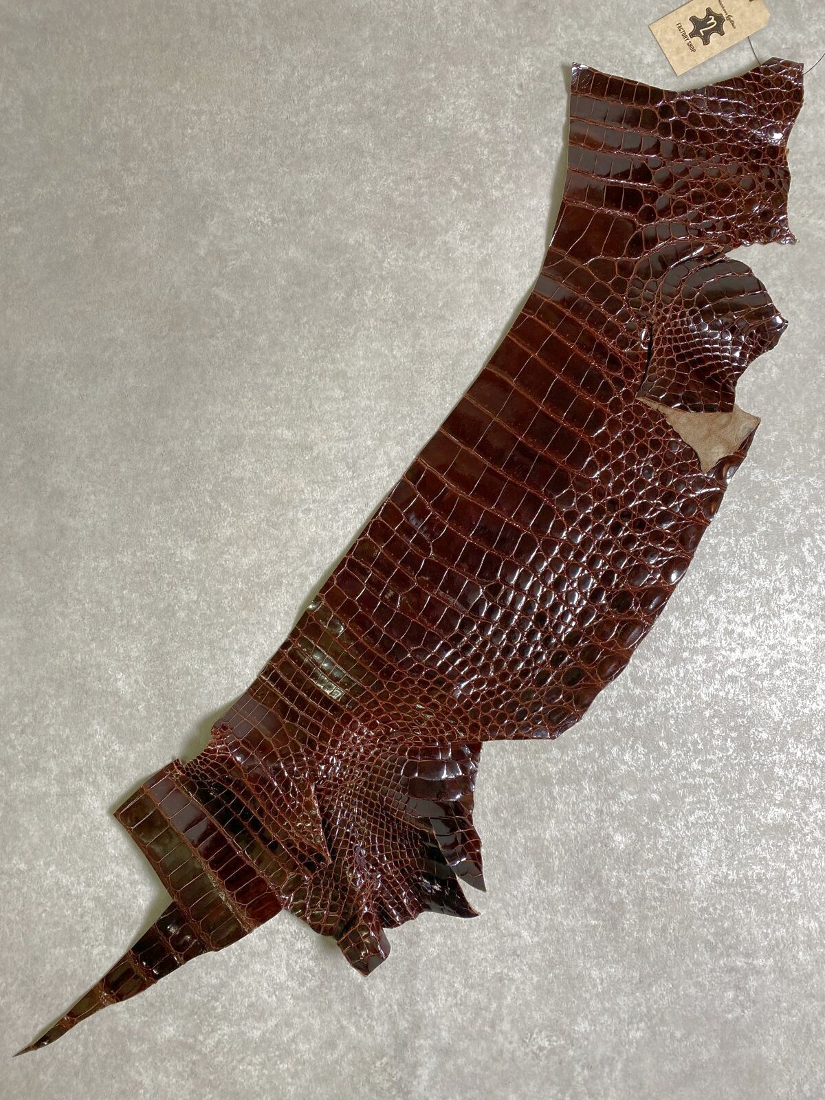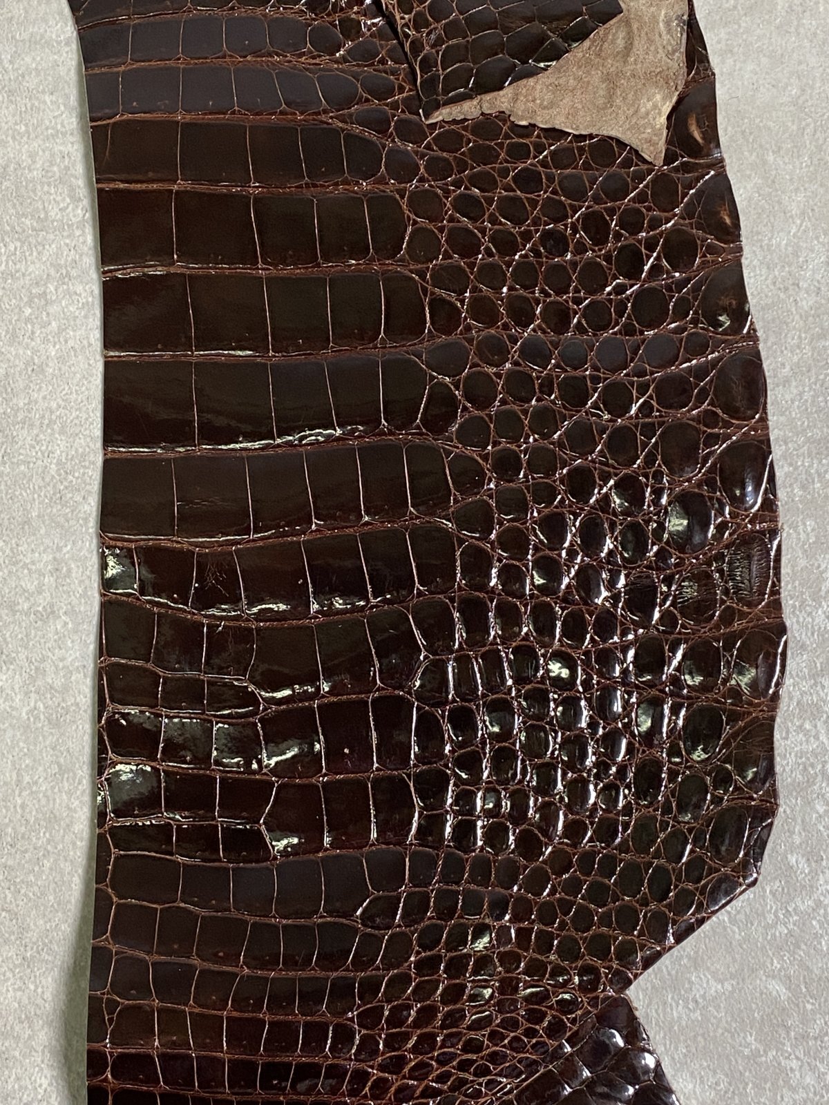 特徴のある鱗(腑)の模様が細やかで美しく高級財布等に使用されています。