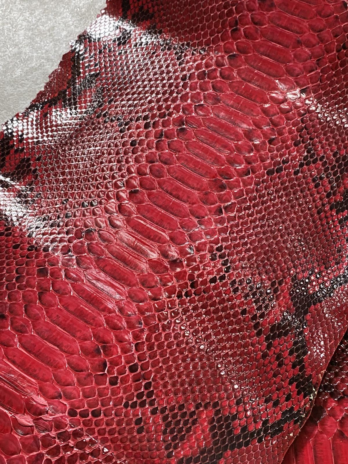 ダイヤモンドパイソン ヘビ革 レッド B/C 264cm 蛇革 エキゾチックレザー [DPY-6-0219-3]