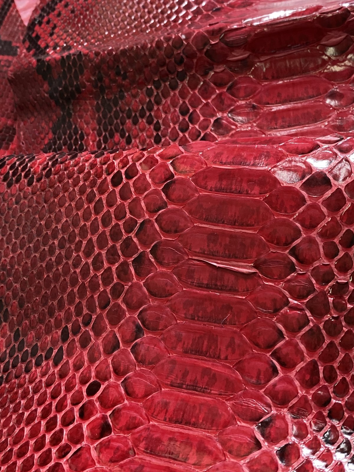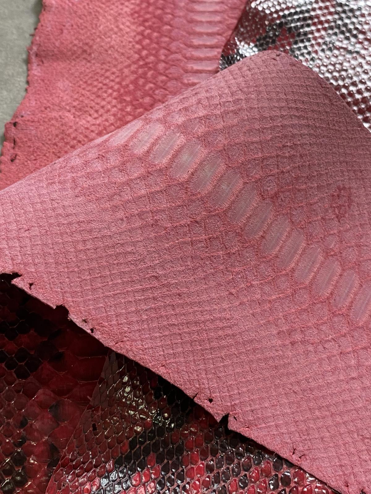 ダイヤモンドパイソン ヘビ革 レッド B/C 264cm 蛇革 エキゾチックレザー