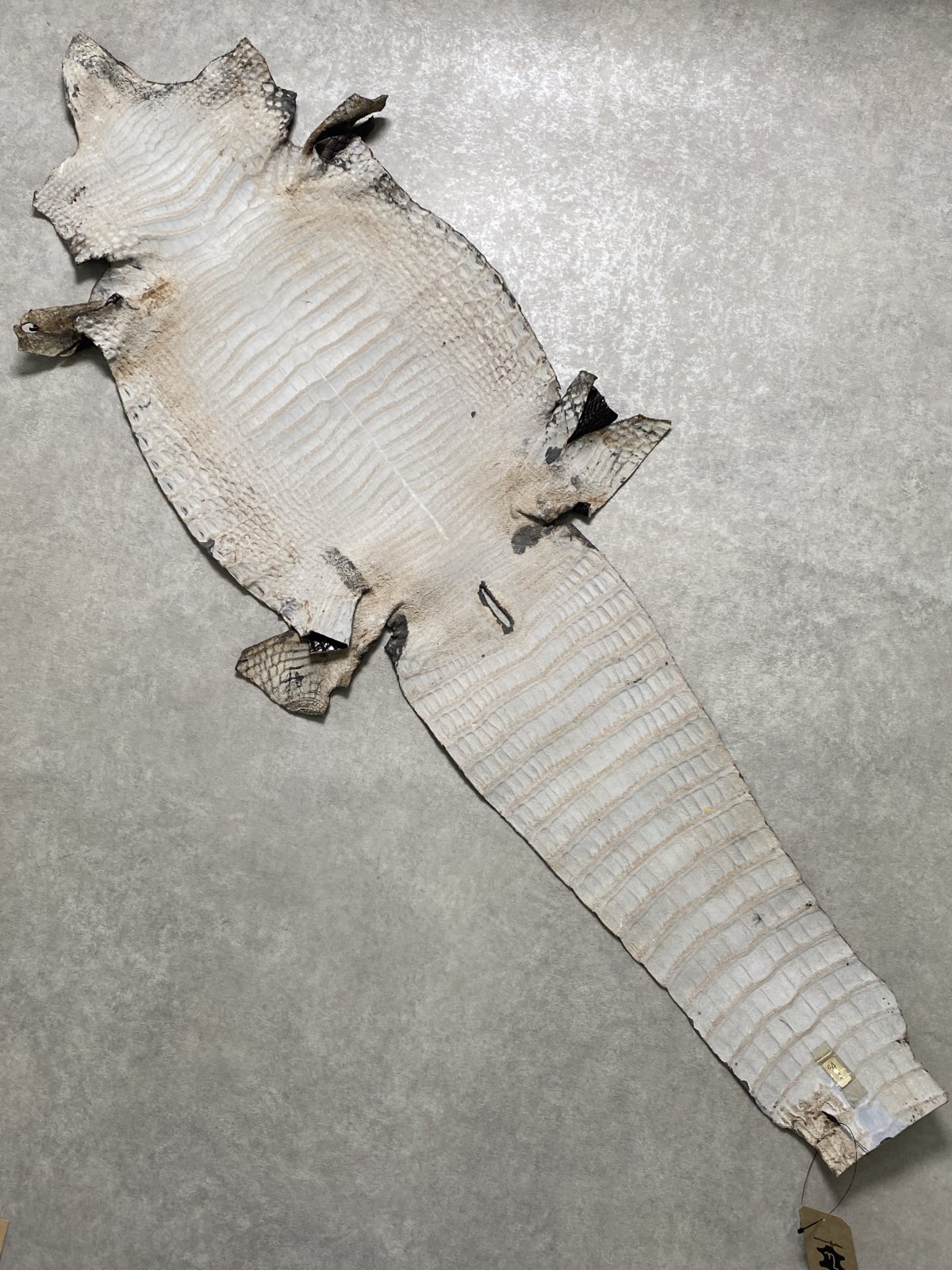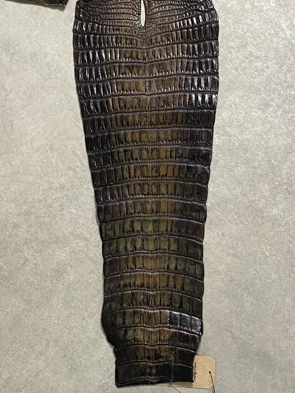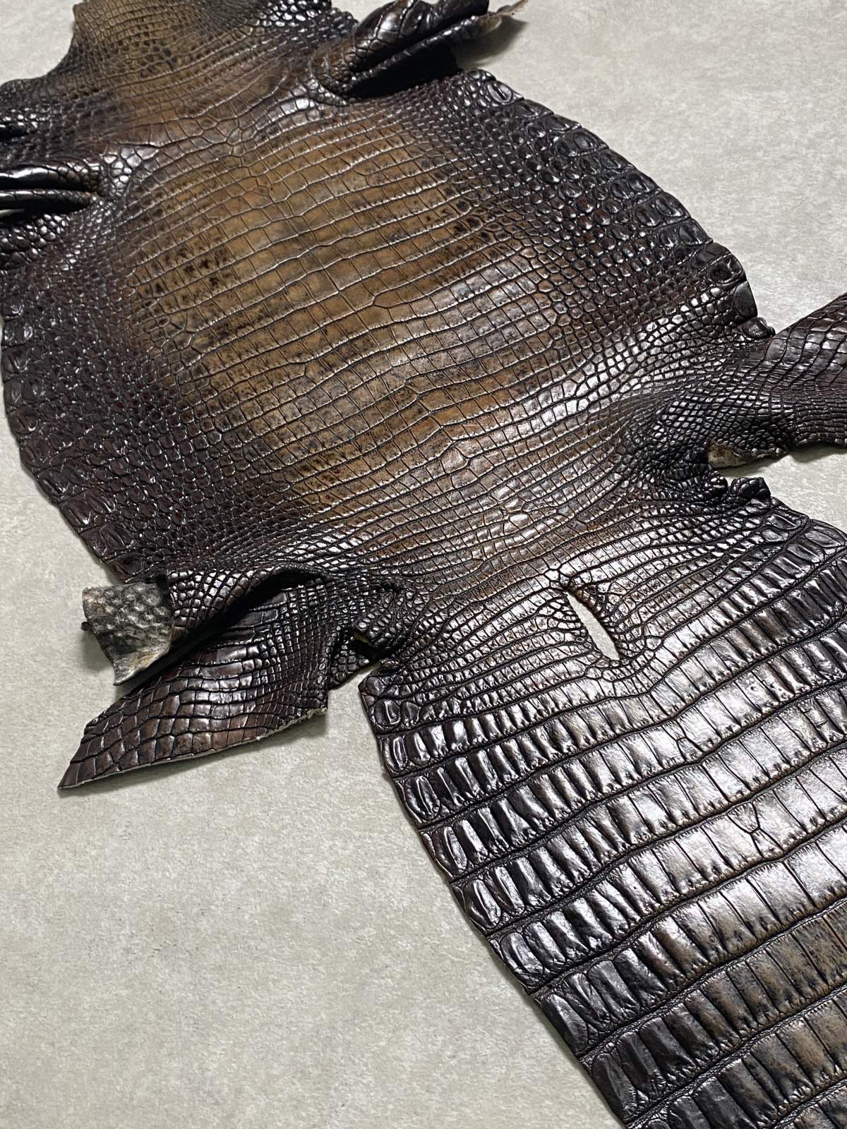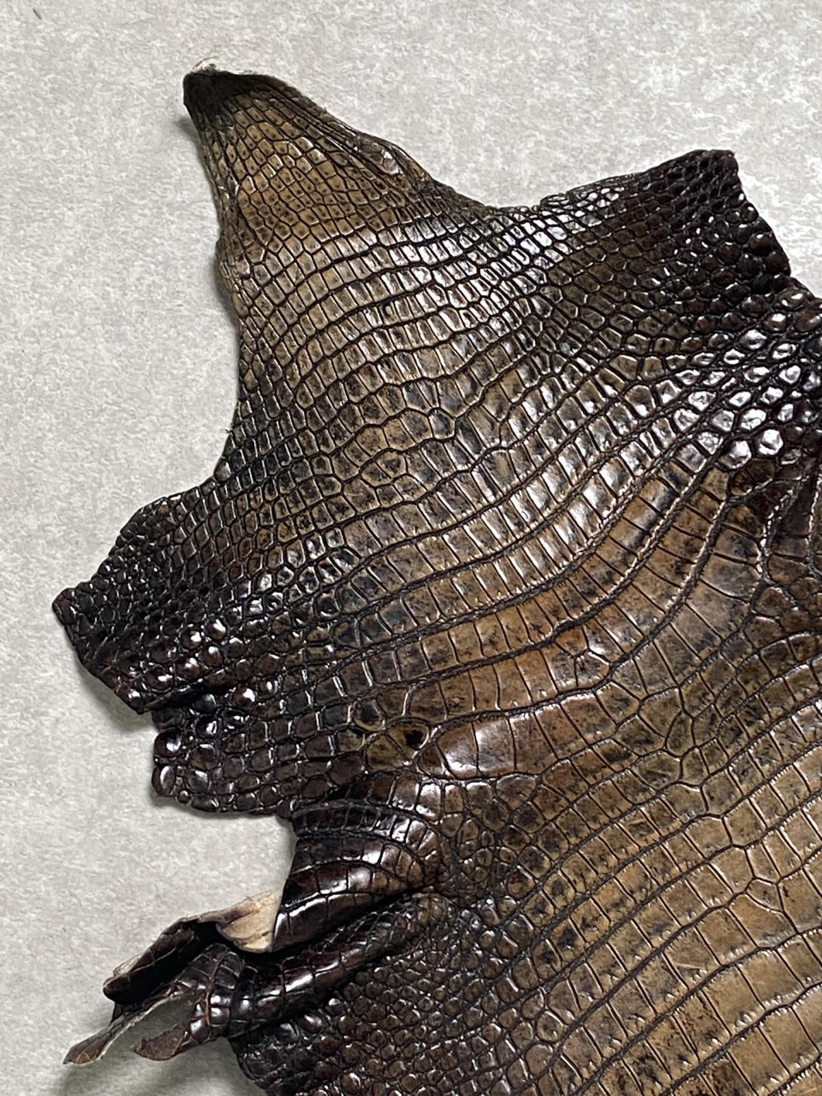 特徴のある鱗(腑)の模様が細やかで美しく高級財布等に使用されています。