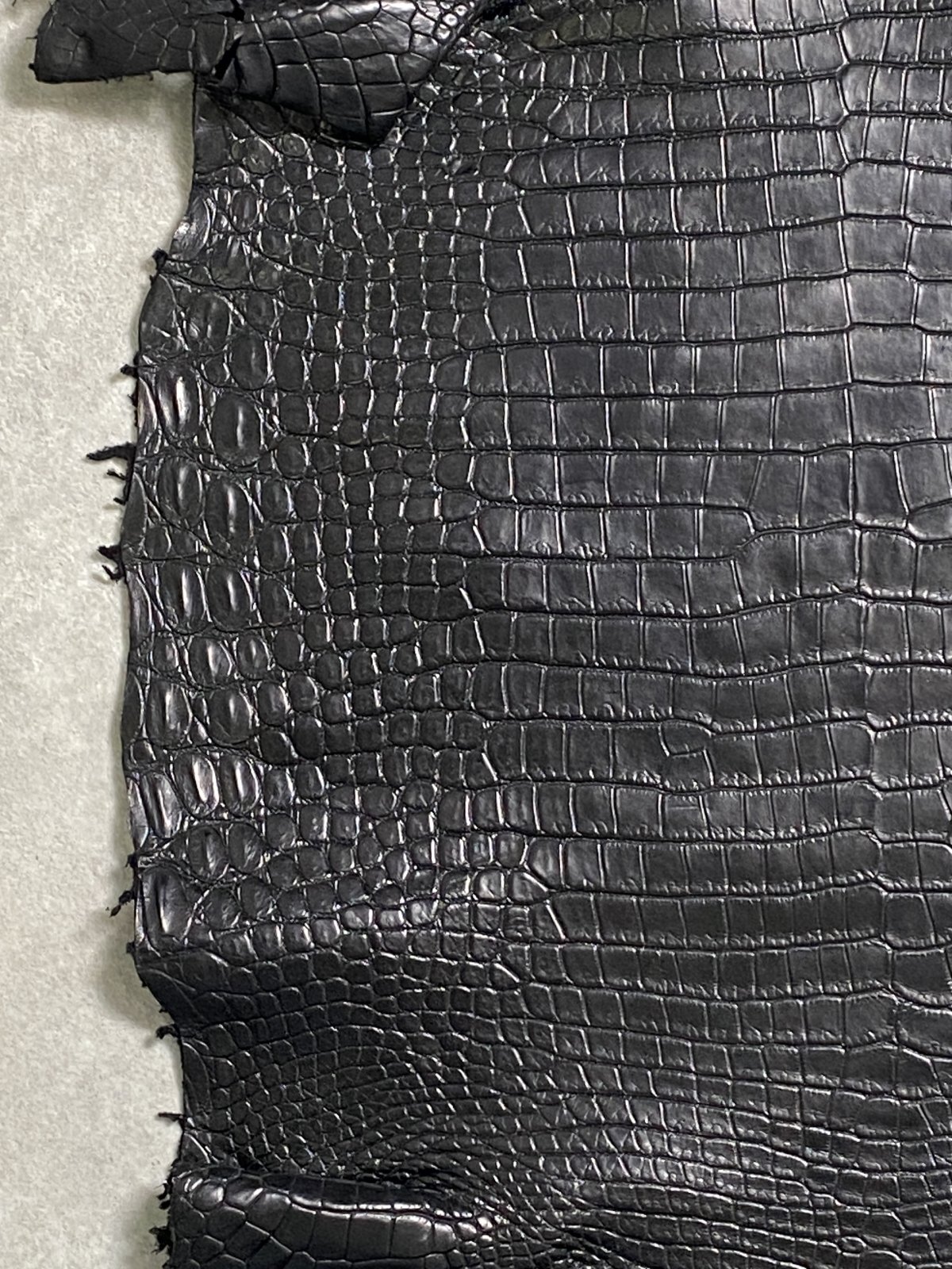 特徴のある鱗(腑)の模様が細やかで美しく高級財布等に使用されています。