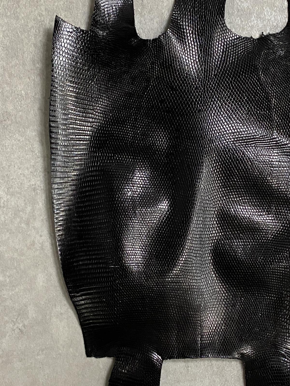 リザード トカゲ革 ブラック 29cm エキゾチックレザー [LZ-60415-3]